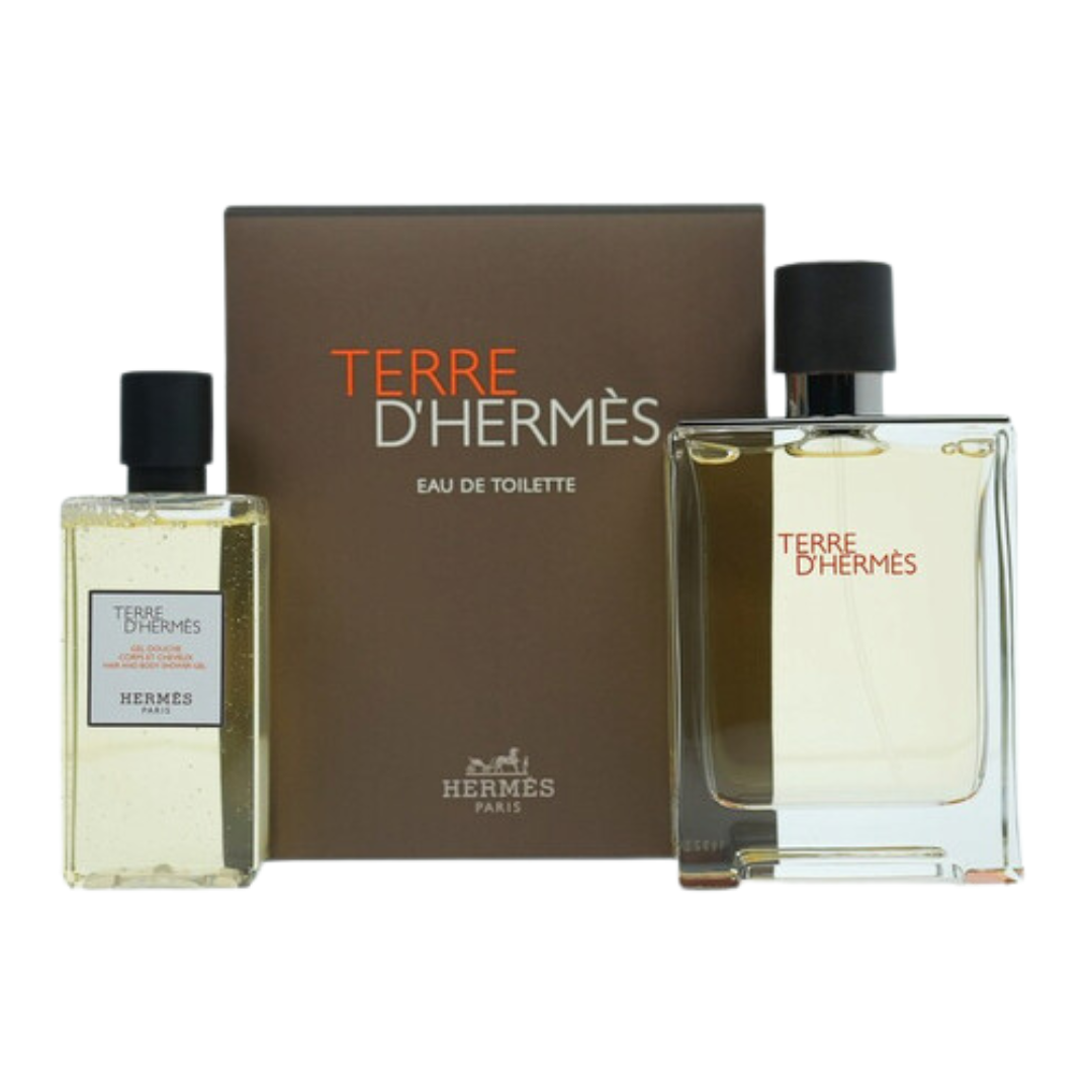 The Hermes Men's Terre D'Hermes Gift Set includes an EDT 3.4 oz fragrance and a 2.7 oz Shower Gel, making it the perfect duo.