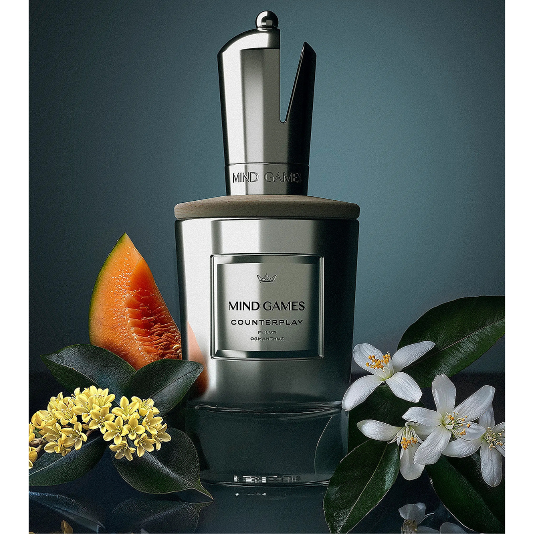 Inspired by the scent of a perfectly ripe cantaloupe on a sunlit summer afternoon, Counterplay is designed to disrupt the mundane and seize the momentum. The fragrance unfolds with a fruity top note that evokes a sense of joy.
