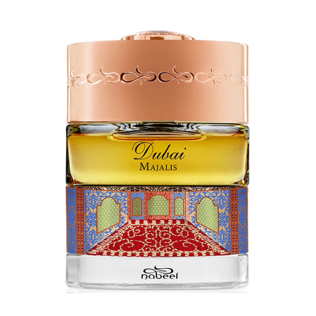 Majalis by The Spirit of Dubai is a Amber Spicy fragrance for women and men. Majalis was launched in 2016. Top notes are Strawberry, Raspberry, Incense, Peach, Rose, Cardamom, Olibanum, Pink Pepper, Apple, Cacao, Coffee, Green Notes, Artemisia, Osmanthus and Grapefruit; middle notes are Dates, Saffron, Guaiac Wood, Patchouli, Cloves, Flowers, Powdery Notes, Carnation, Mate, Iris, Heliotrope and Vetiver; base notes are Incense, Honey, Tobacco, Agarwood (Oud), Olibanum, Myrhh, Benzoin, Woodsy Notes, Hay, Labdanum, Leather, Sandalwood, Vanilla and Musk.